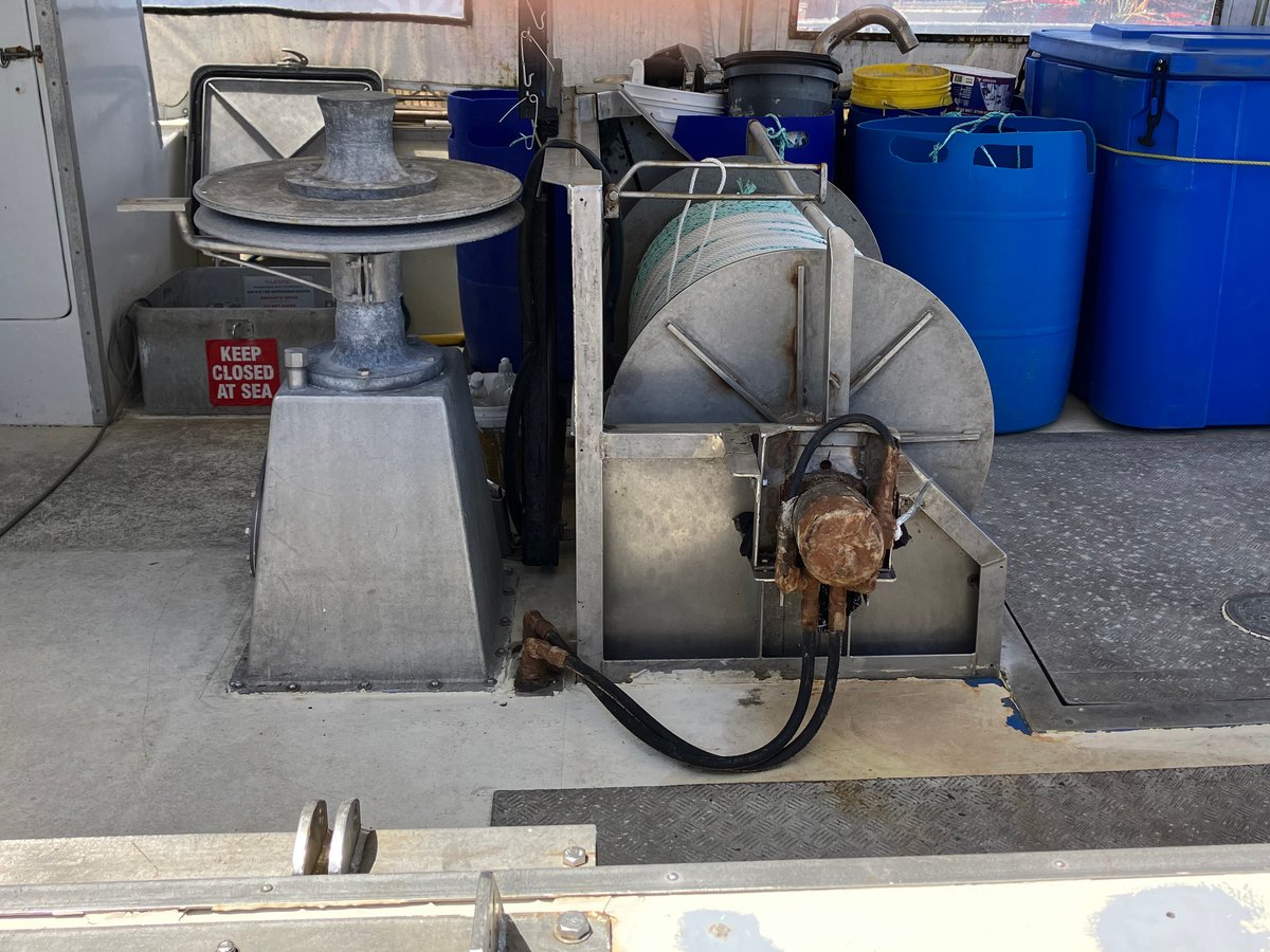 • Hydraulic Stainless long line spool. Approximately 8000 metres 6mm poly prop, with 6mm white buoylines